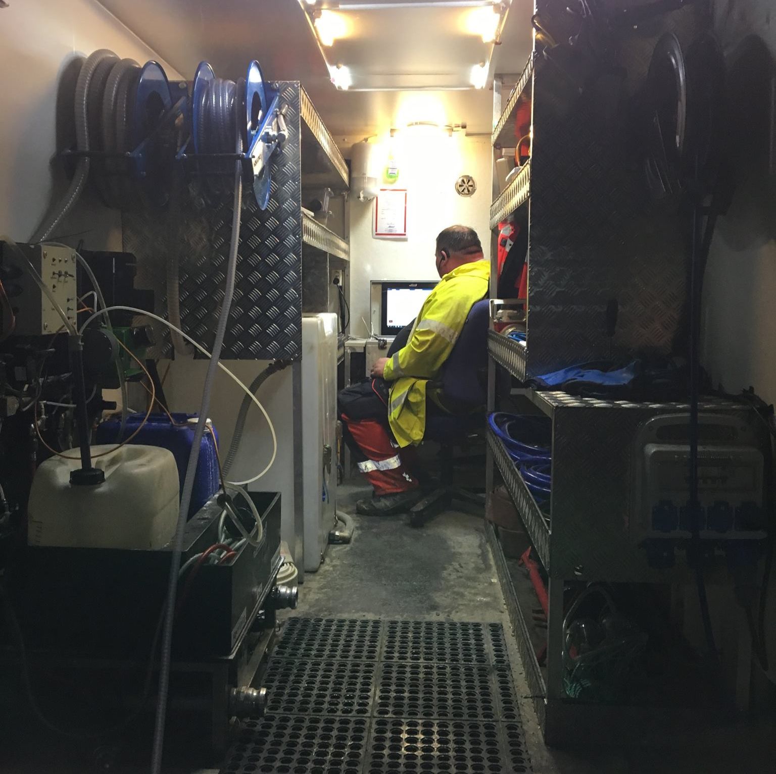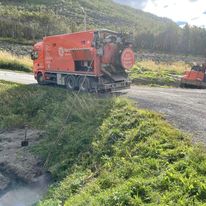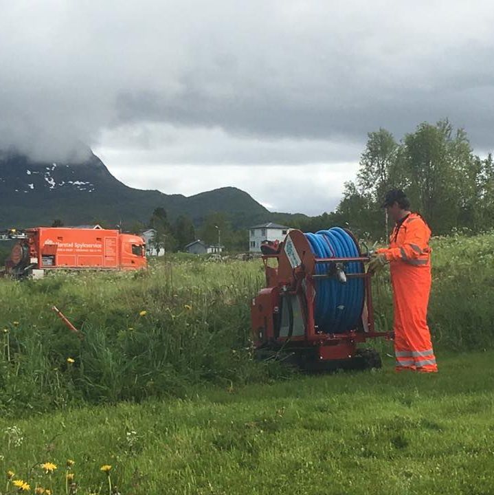 Siden en del av rørledningene og kummer ligger langt fra vei, hadde vi med oss satelittspyler (Beltedrevet terreng maskin med spyletrommel) og 6 hjuling med mobilt filmutstyr. Prosjektet startet opp sommer 2016 og vil bli ferdig stilt etter påske 2017